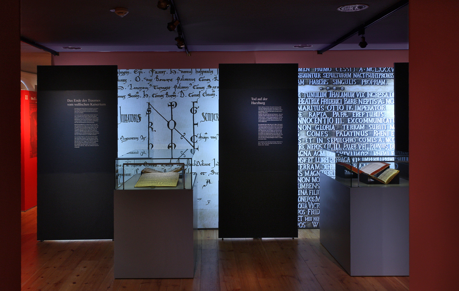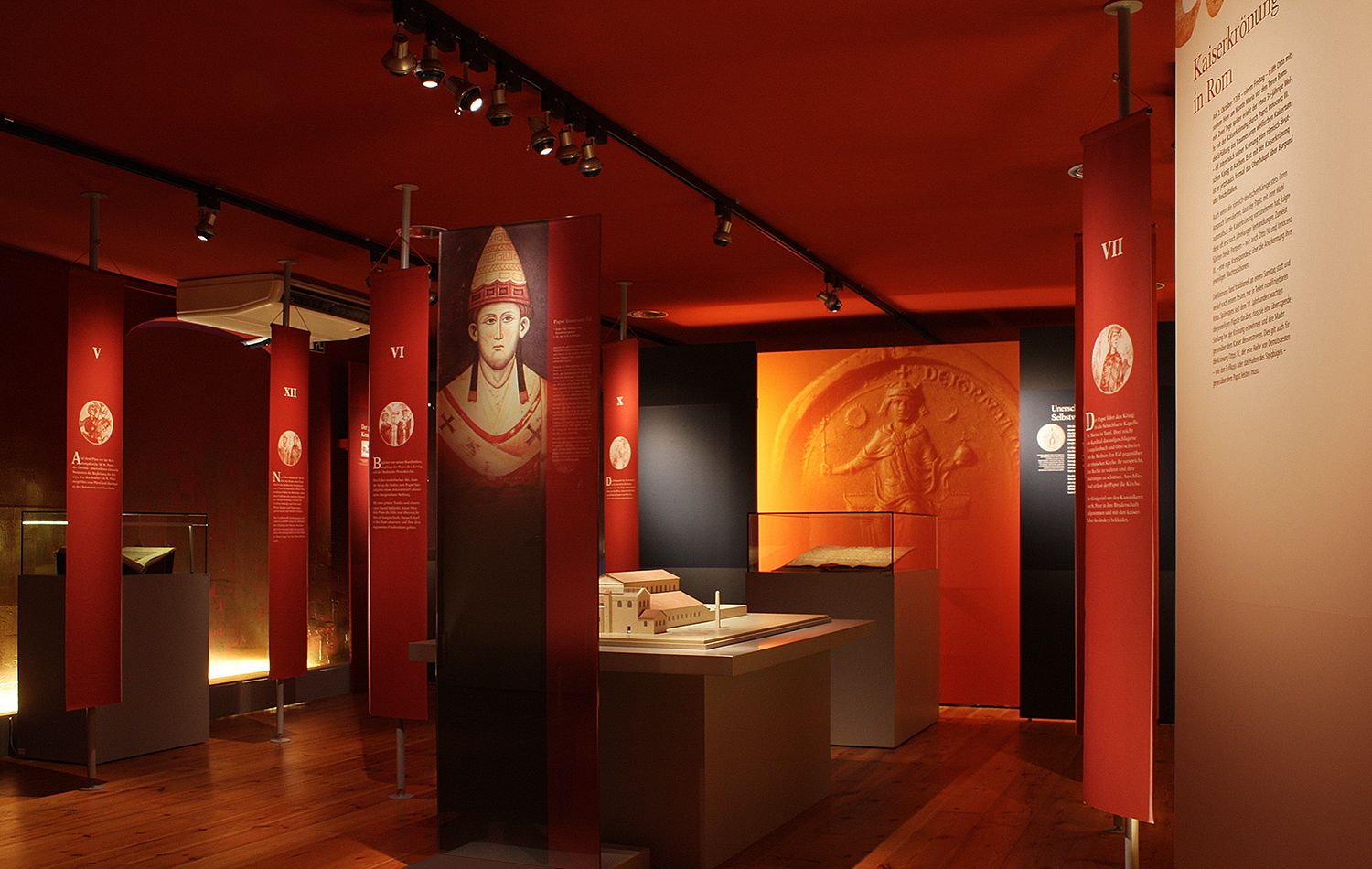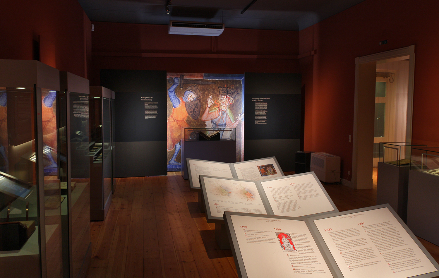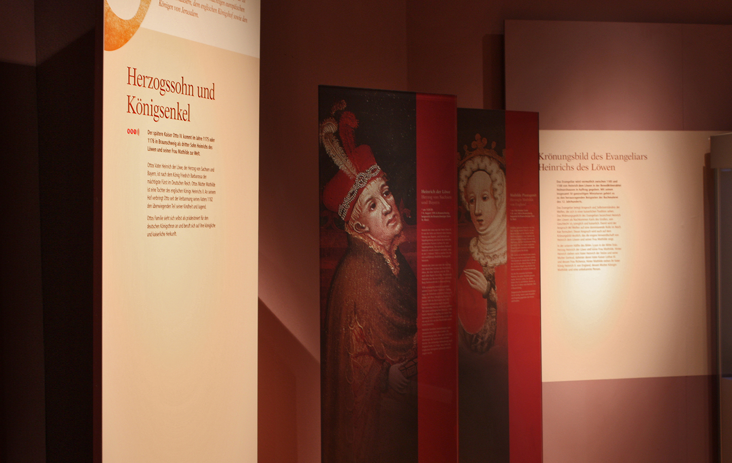 Die Ausstellung im Braunschweigischen Landesmuseum ist als eine Reise ins Mittelalter zur Zeit des Kaisers Otto IV. konzipiert. Das inhaltlich-räumliche Konzept umfasst eine starke Farb- und Lichtdramaturgie. Farben und Lichtstimmungen von unterschiedlicher Intensität akzentuieren historische Ereignisse. Höhepunkte erscheinen in leuchtendem Rot und Gold. Untergeordnete Ereignisse werden farblich zurückhaltend inszeniert.