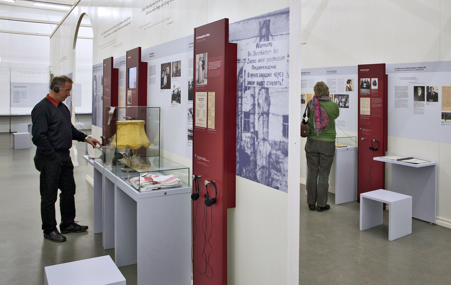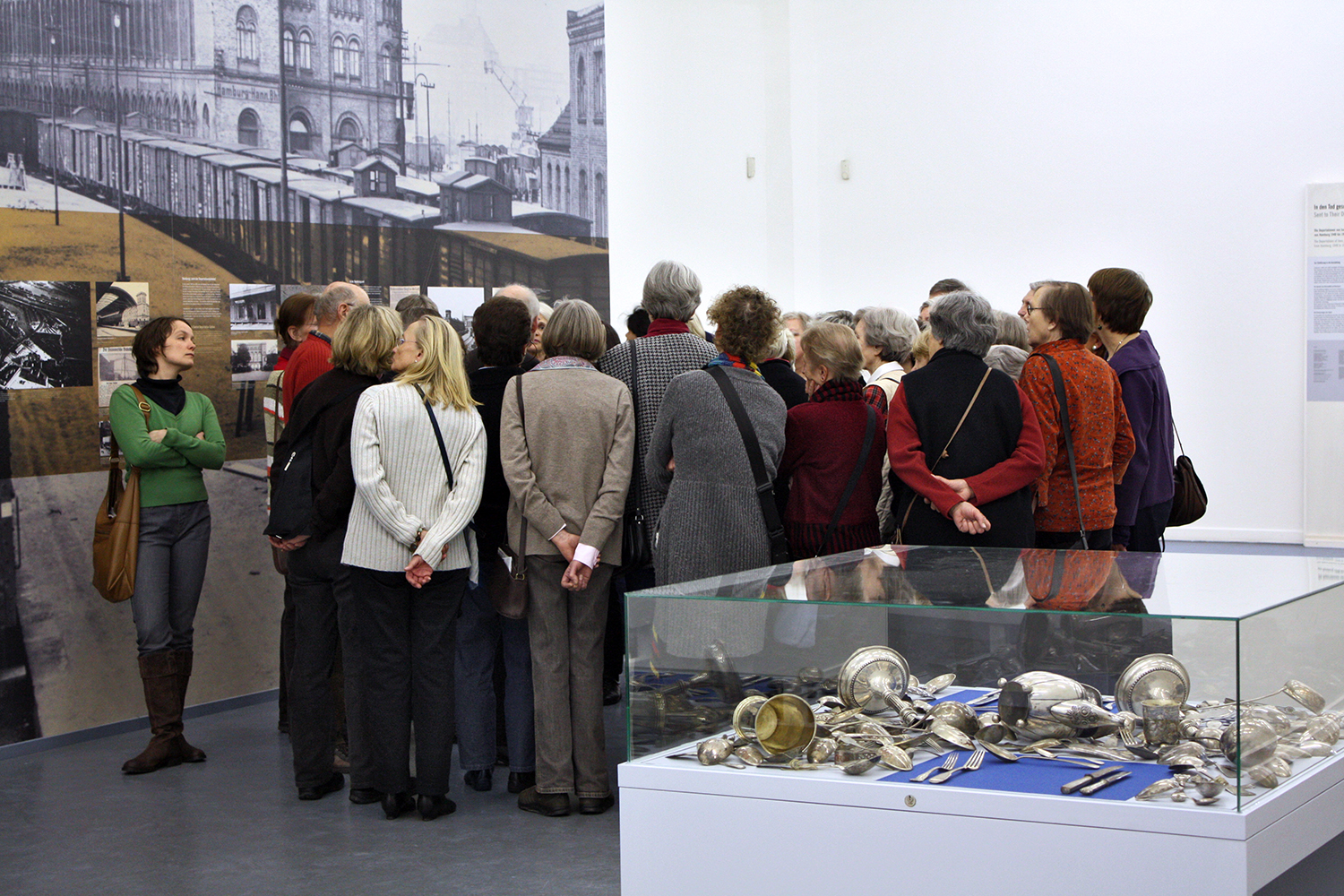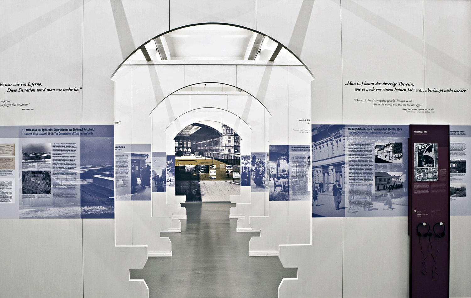 Die Architektur der Ausstellung besteht aus fünf Wandscheiben, die in Anlehnung an die Deportationszüge die Silhouette eines historischen Eisenbahnwaggons nachbilden. Die Deportationen von Sinti, Roma und Juden aus Hamburg 1940 – 1945 wird in Vitrinen, mit Audio- und Videostationen, in Lesemappen und an Computerstationen um diesen zentral durch die Ausstellung laufenden Gang herum präsentiert. Der Ausgangspunkt dieser Achse zeigt den Hannoverschen Bahnhof, als Endpunkt verdeutlicht eine Collage das »Ziel« der Deportationen: Die Ghettos und Vernichtungslager.