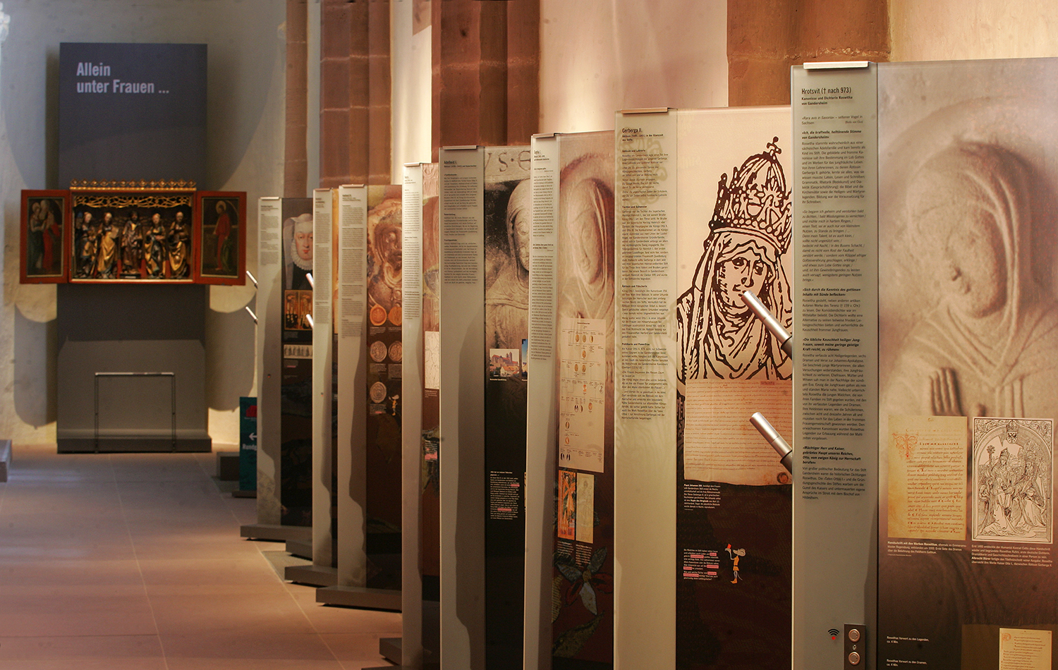 Die Ausstellung "Starke Frauen - Feine Stiche" präsentiert neben kostbaren Textilien des frühen Mittelalters bis Barock auch das Leben starker Frauen, die im Stift wirkten. In der gotischen Klosterkirche zeugen außerdem mittelalterliche Skulpturen und farbenfrohe Glasmalerei von der Blüte des Gandersheimer Reichsstifts. Von den Stiftsdamen sind Geschichte und eindrucksvolle Geschichten überliefert.