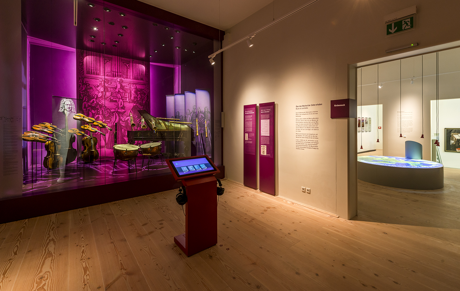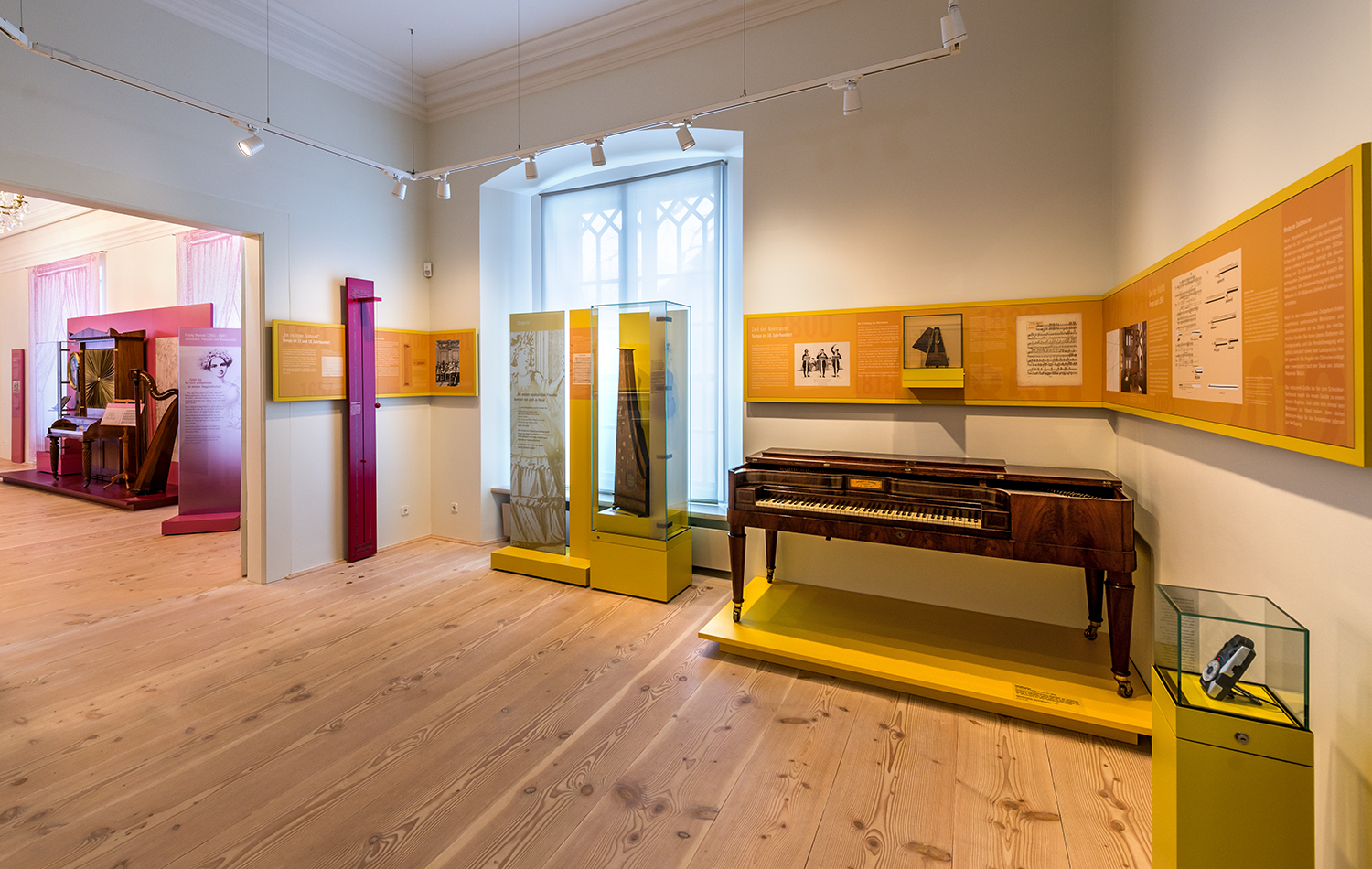 Die Sammlung historischer Musikinstrumente wird in acht neu gestalteten Räumen präsentiert. Musizierende Personen und Musikalien der jeweiligen Zeit ergänzen die Exponate, von denen viele stimmungsvoll mit Licht-Ton-Inszenierungen in Szene gesetzt sind. Eine Zeitmaschine macht es möglich, Klänge vergangener Jahrhunderte zu hören, bedeutenden Komponisten, Instrumentenmachern und Musikern zu begegnen. Ausgewählte Exponate können vom Besucher gespielt und ausprobiert werden. Experimentierstationen und Modelle verdeutlichen, wie Töne entstehen.