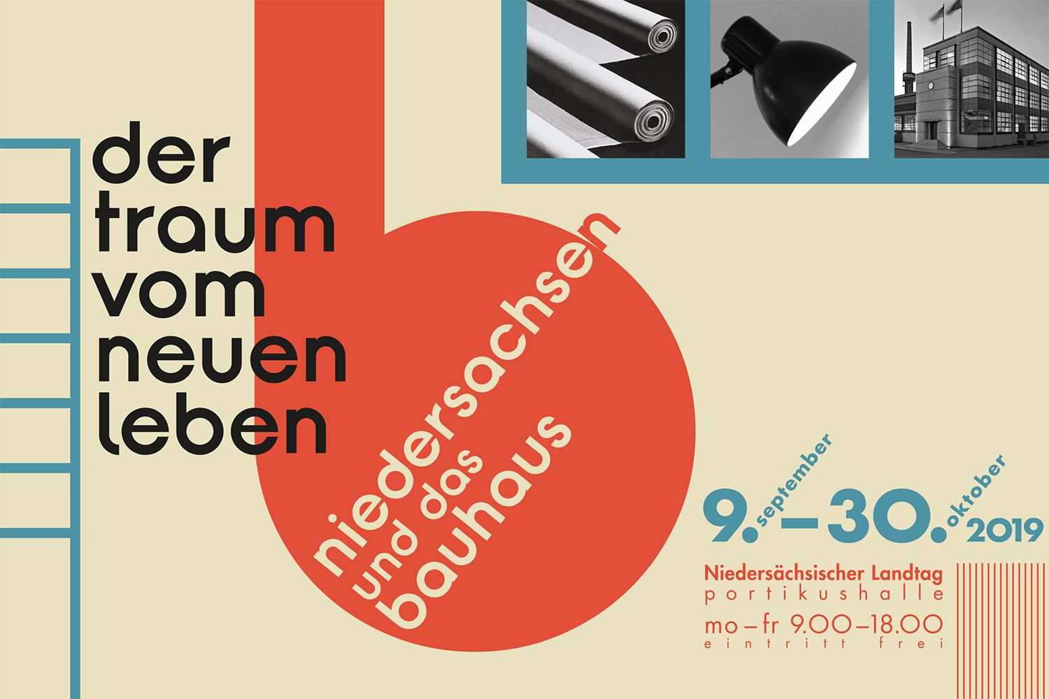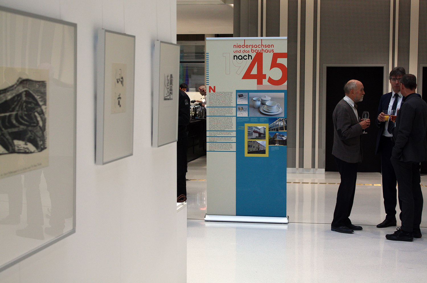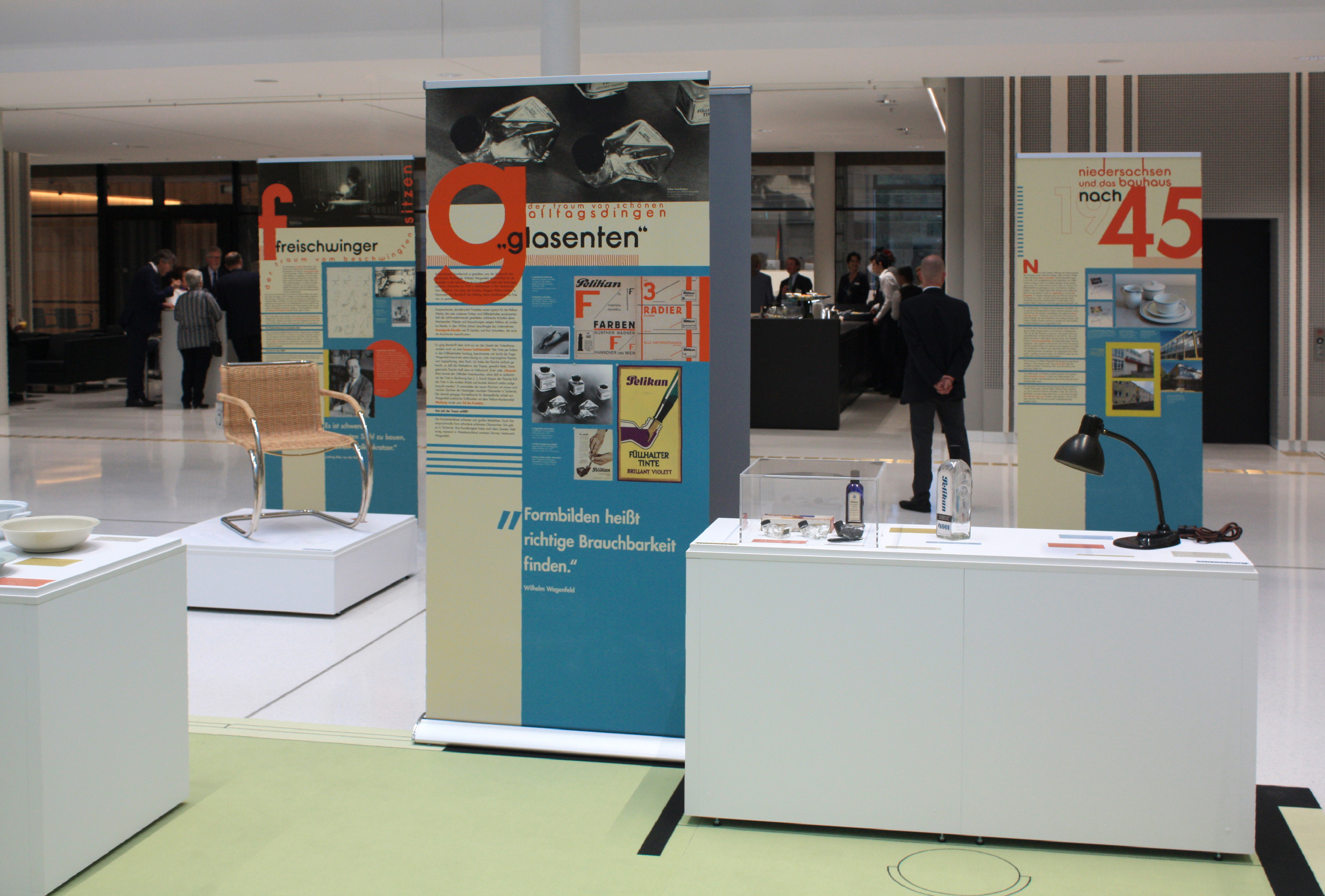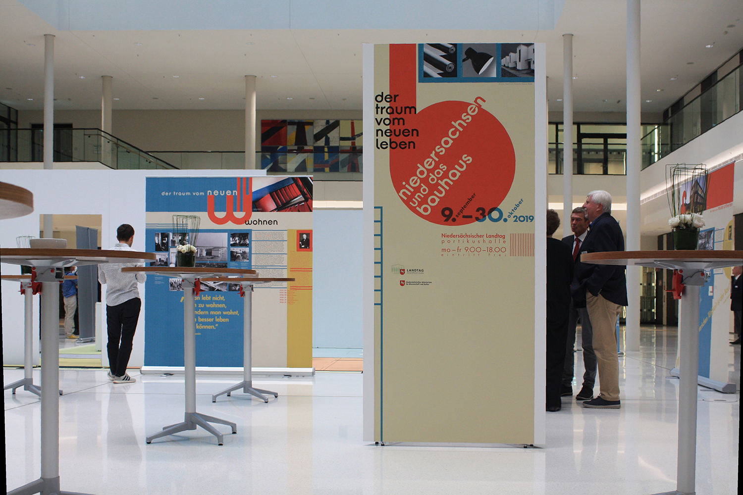 Anläßlich des 100-jährigen Gründungsjubiläums des Bauhauses beantwortet eine temporäre Ausstellung im Landtag Niedersachsen die Frage nach den Verbindungen, die es zwischen (dem heutigen Bundesland) Niedersachsen und dem Bauhaus gab und noch heute gibt. Beispielhaft werden Unternehmen und Institutionen vorgestellt, die sich auch heute noch dem Gedankengut verpflichtet fühlen, das sie bereits in den 20er, 30er und nachfolgenden Jahren zu einer Zusammenarbeit mit Bauhäuslern bewogen hatte.