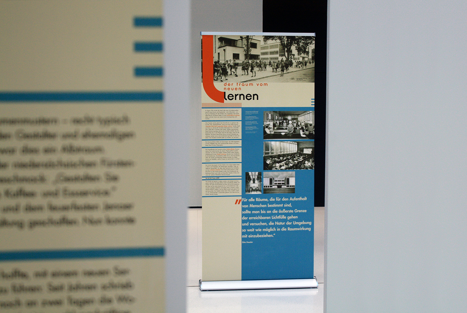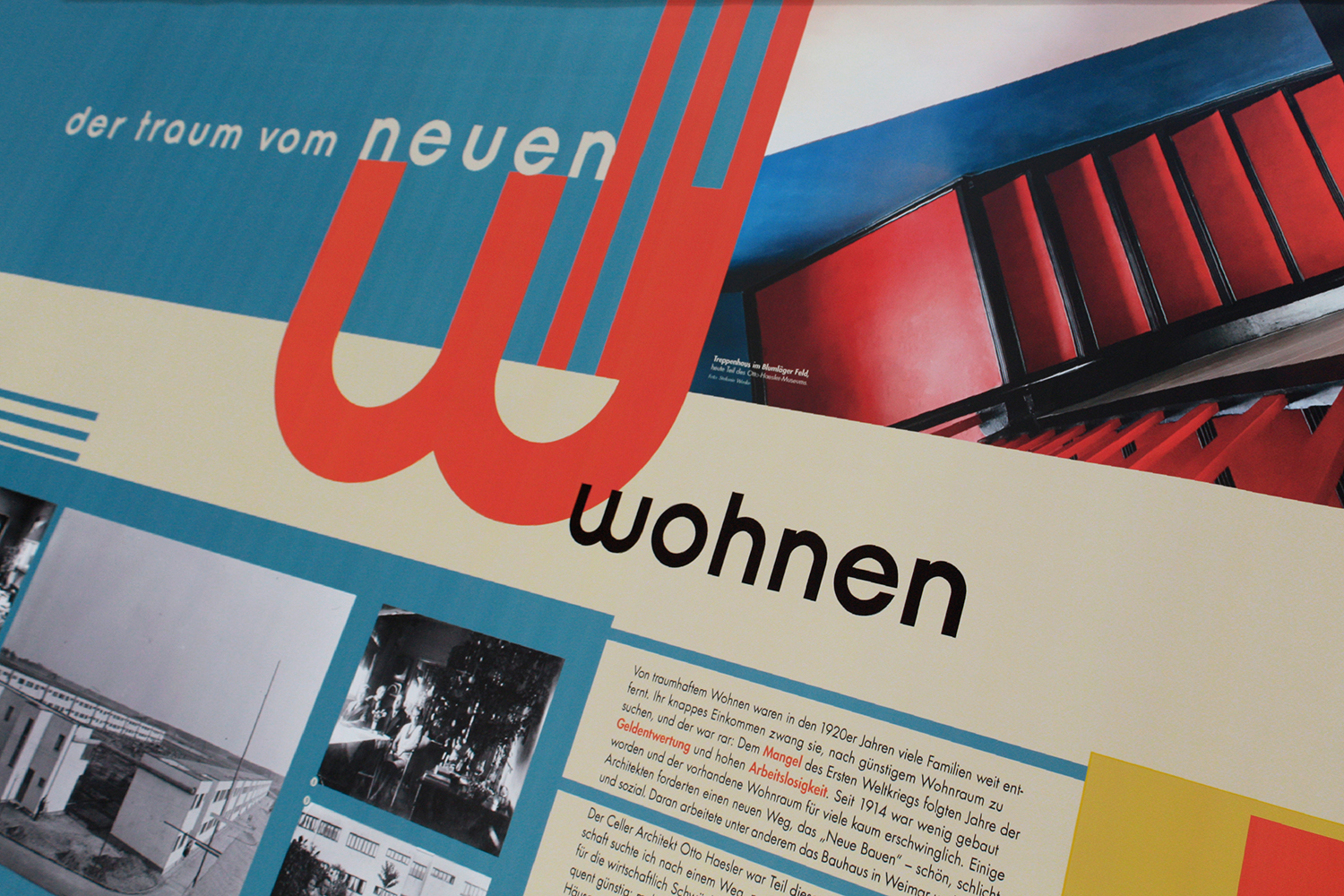 Die Ausstellungsgrafik adaptiert bekannte zeitgenössische Gestaltungselemente.