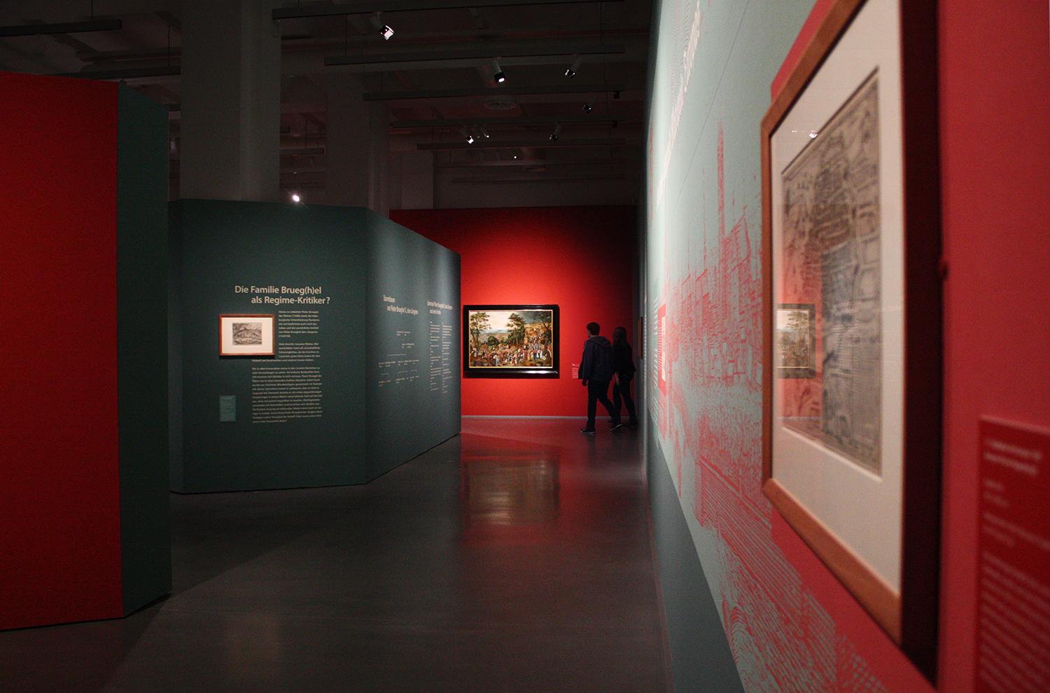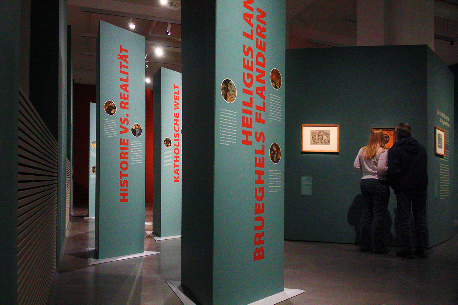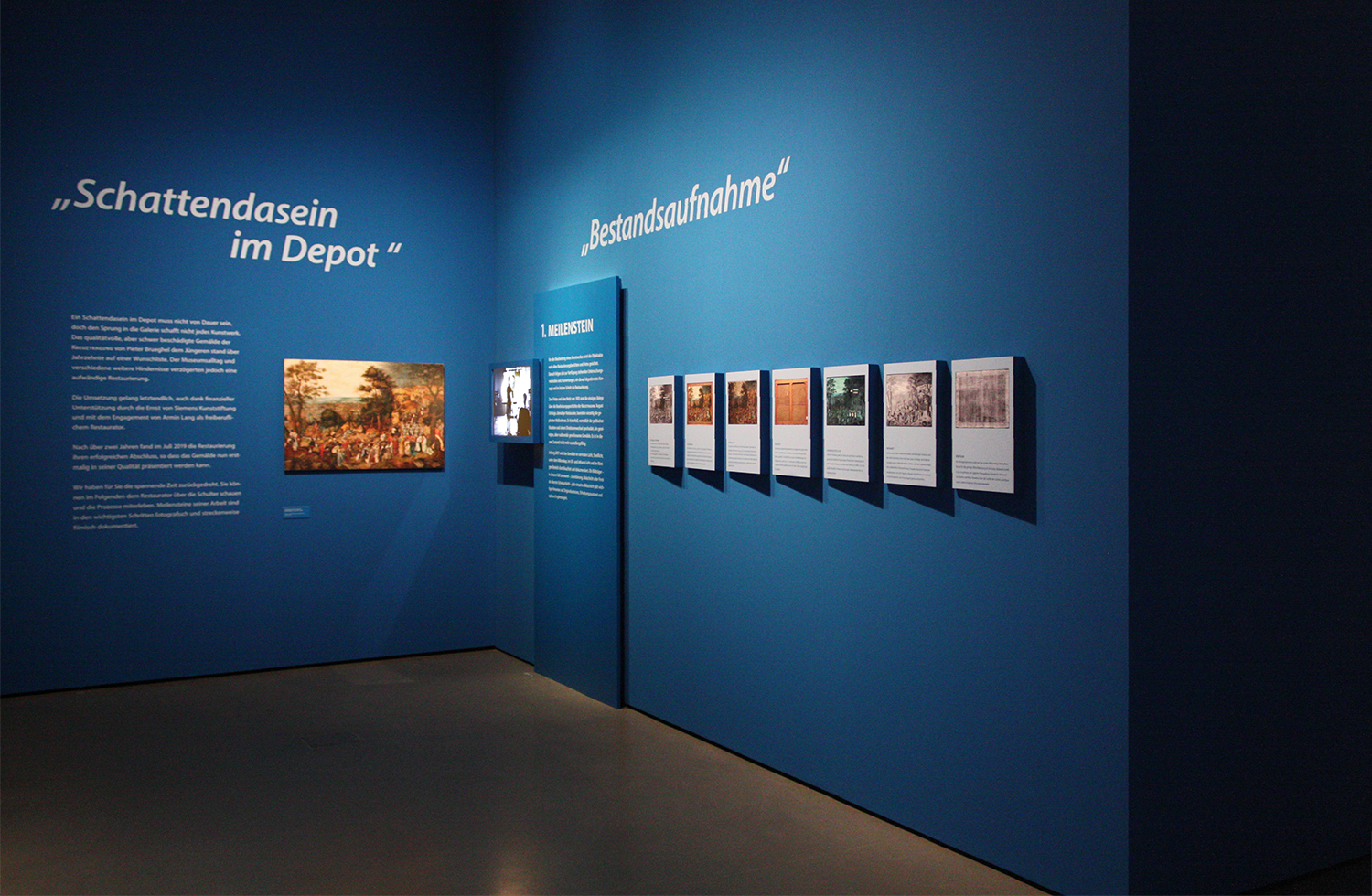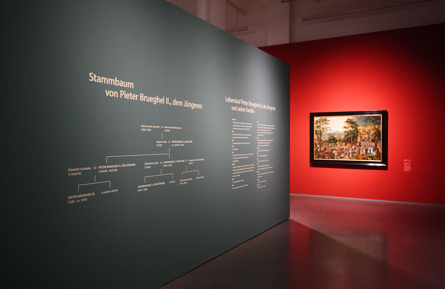 Das Farbkonzept folgt der Zweiteilung der Ausstellung. Zuerst werden der Künstler Pieter Brueghel d.J. und das frisch restaurierte Gemälde inszeniert und inhaltlich erläutert. Im zweiten Teil wird der restauratorische Weg vom beschädigten Depot-Bild zurück zu einem Prunkstück seiner Zeit nachvollzogen. Eine Malwerkstatt der Museumspädagogik schließt sich an die Ausstellung an.