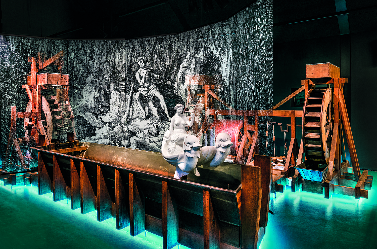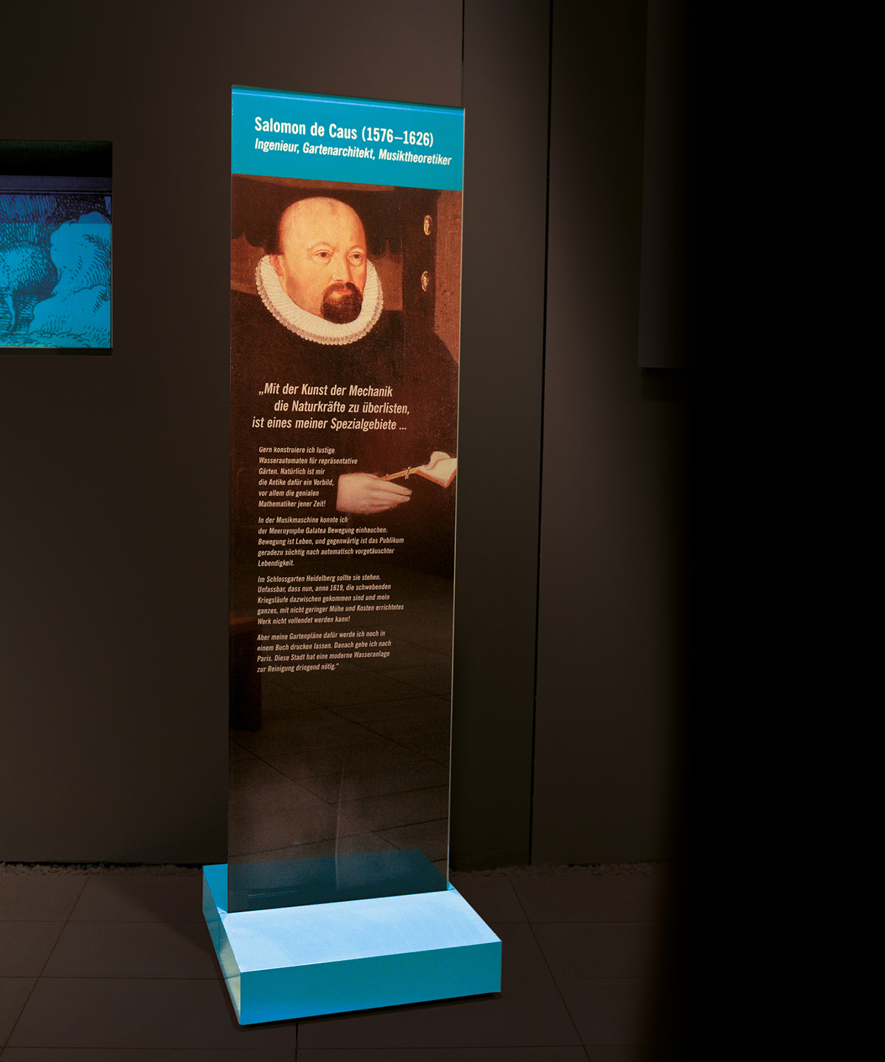 Die Präsentation empfindet die ursprünglich in einer künstlichen Grotte geplante Installation mit modernen Mitteln und einer mehrstufigen Lichtinszenierung nach. Im Rahmen von Führungen wird die Musikmaschine mit Wasserantrieb in Bewegung gesetzt. Eine Medienstation zeigt und erläutert den Betrieb mit seiner vielschichtigen Mechanik.