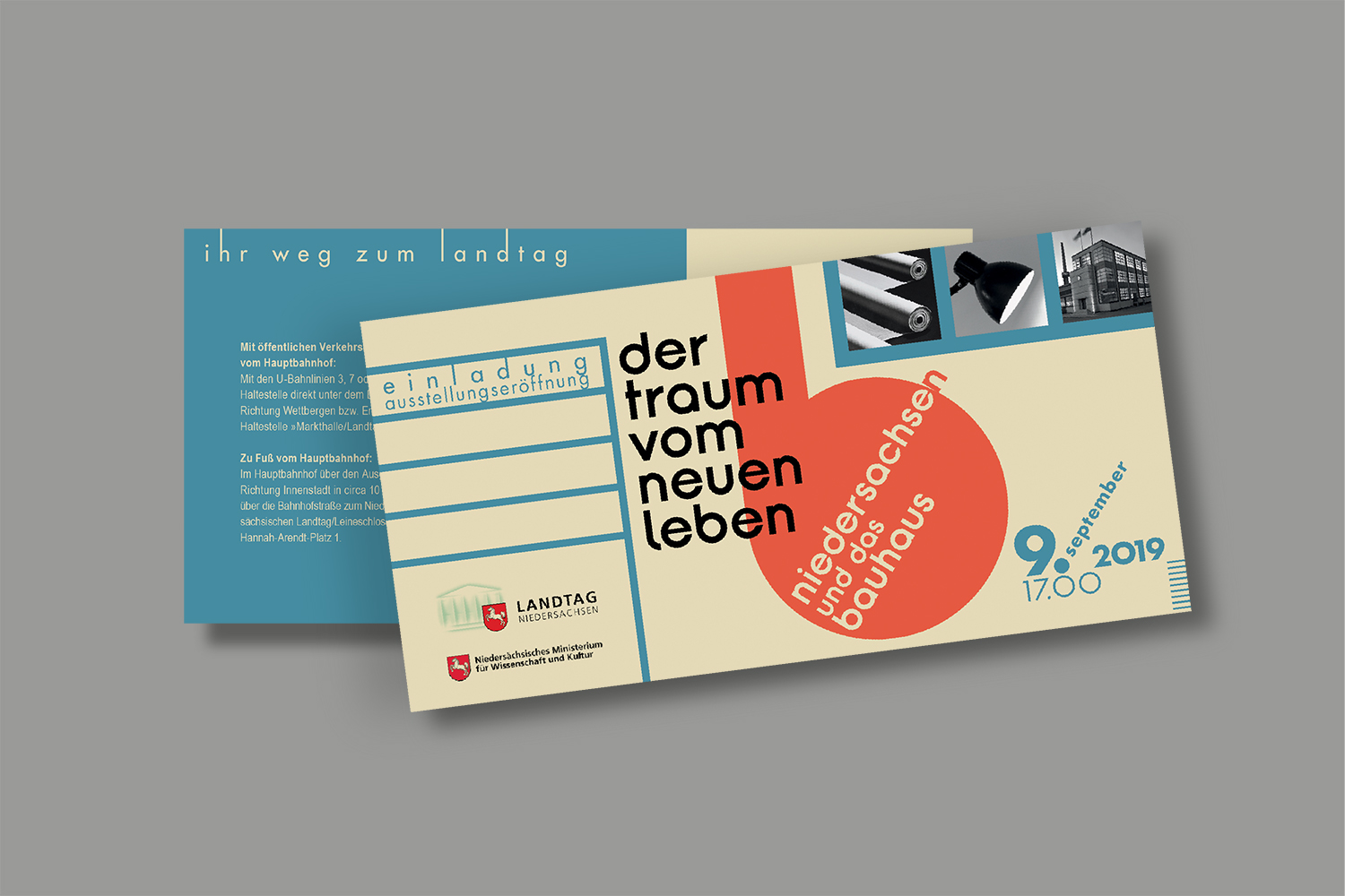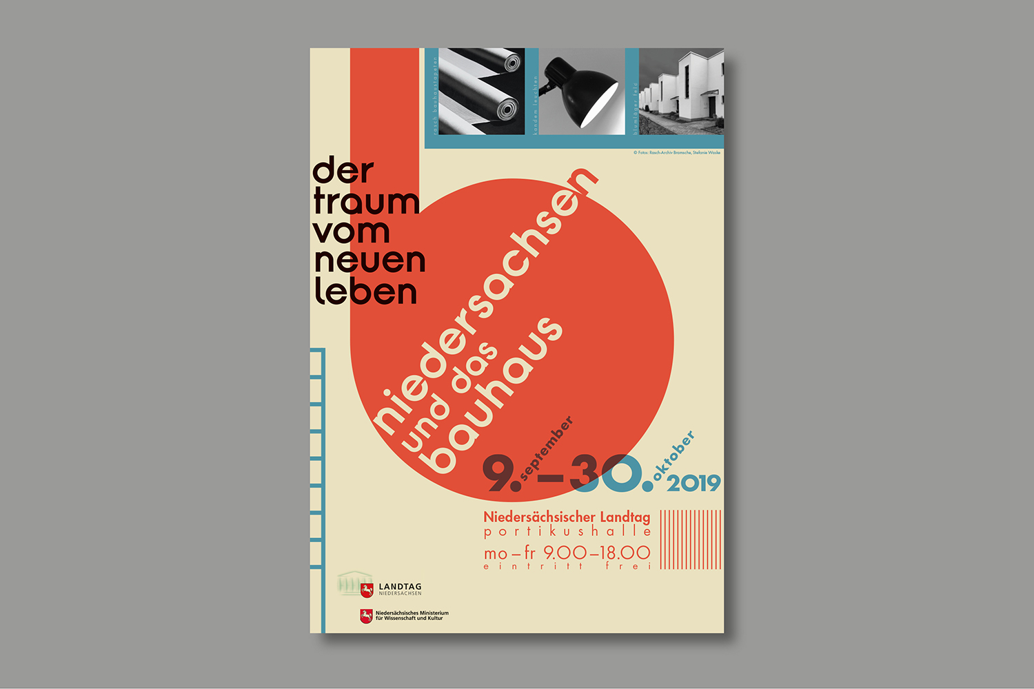 Anlässlich des 100-jährigen Gründungsjubiläums des Bauhauses beantwortet eine temporäre Ausstellung im Landtag Niedersachsen die Frage nach den Verbindungen, die es zwischen (dem heutigen Bundesland) Niedersachsen und dem Bauhaus gab und noch heute gibt. Beispielhaft werden Unternehmen und Institutionen vorgestellt, die sich auch heute noch dem Gedankengut verpflichtet fühlen, das sie bereits in den 20er, 30er und nachfolgenden Jahren zu einer Zusammenarbeit mit Bauhäuslern bewogen hatte.
