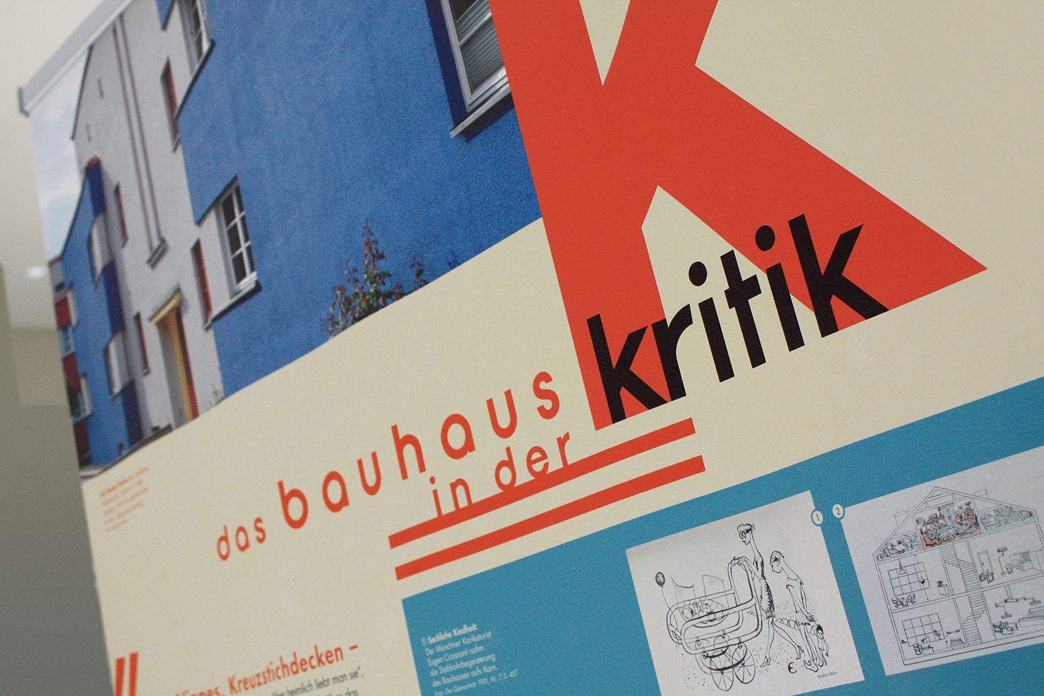 Die Ausstellungsgrafik adaptiert bekannte zeitgenössische Gestaltungselemente.