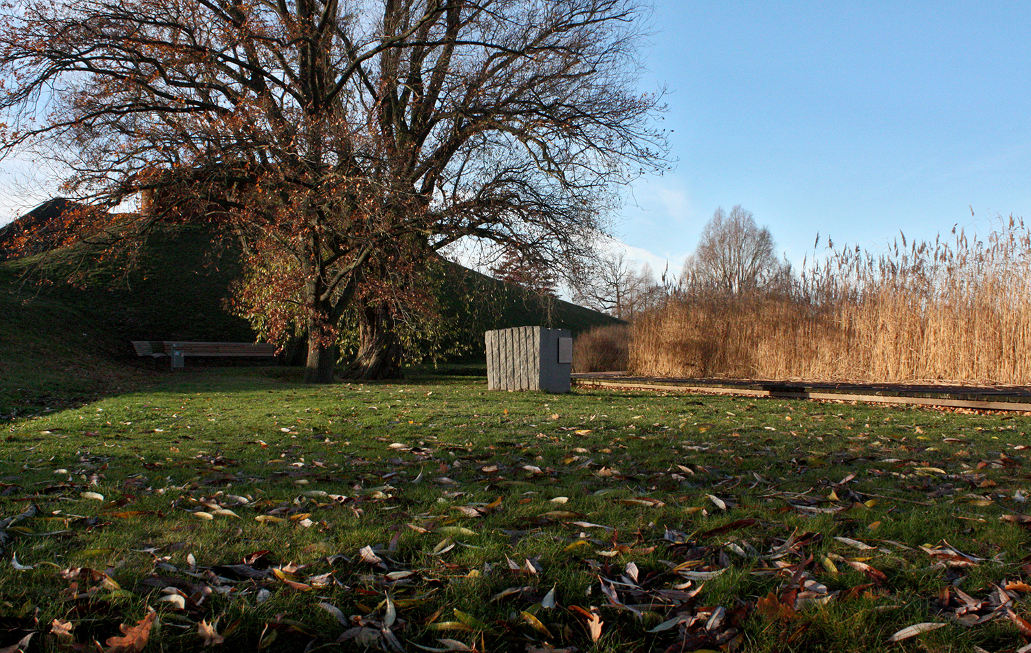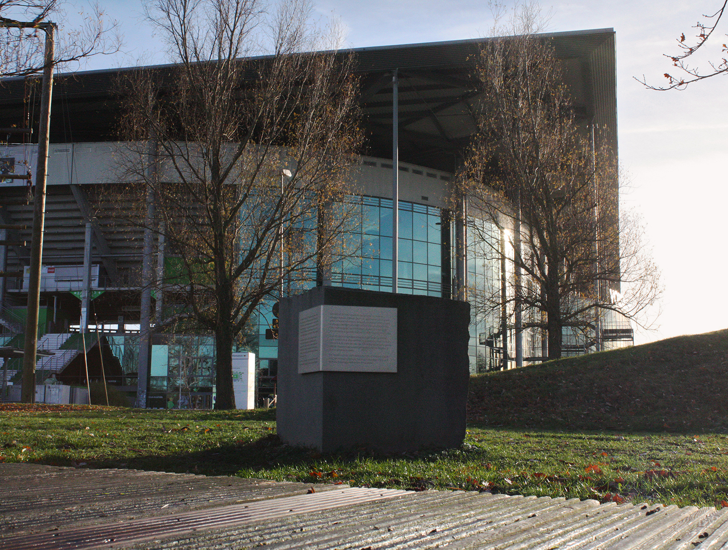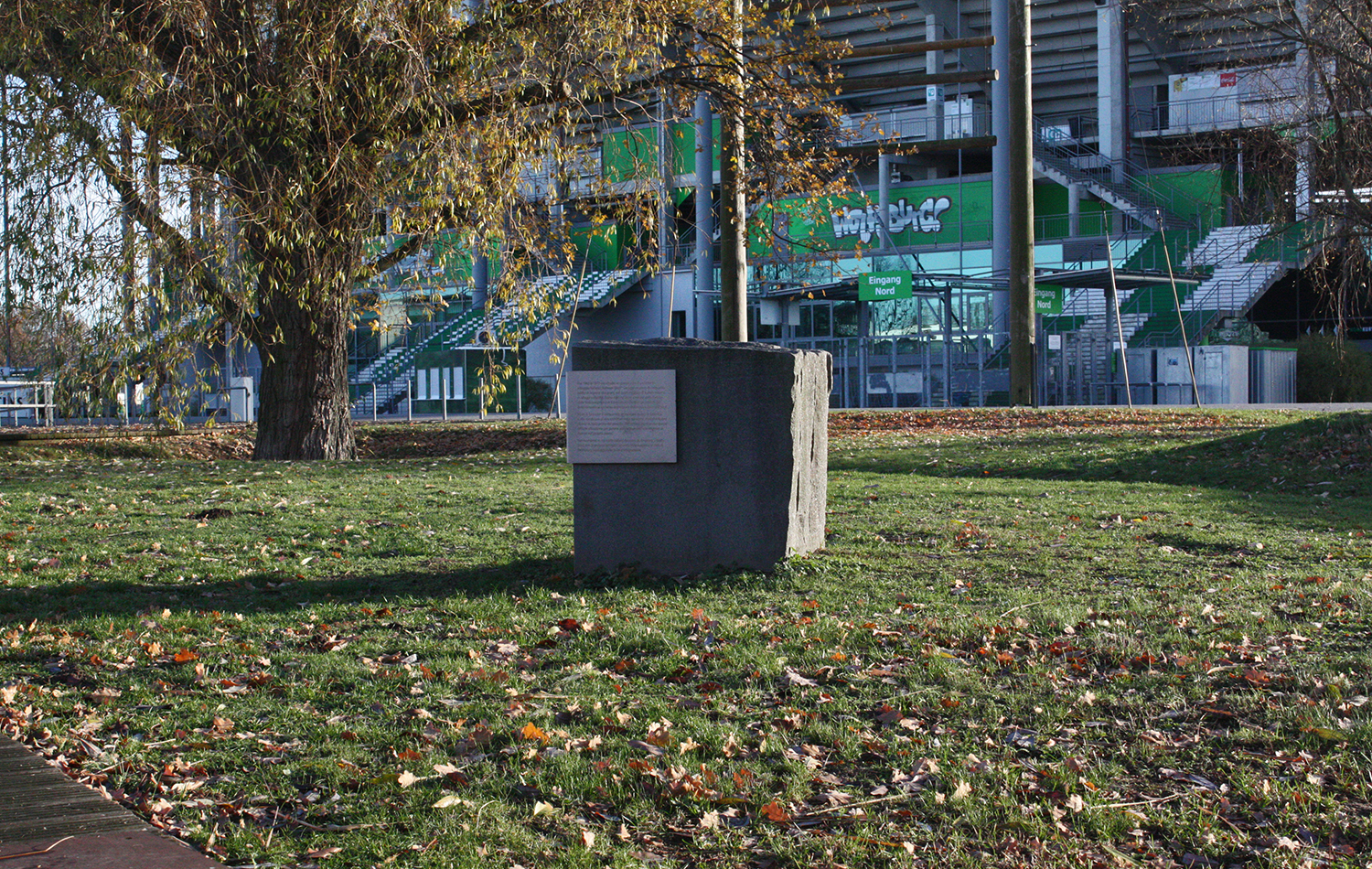 Von 1962 bis 1977 stand das sogenannte »Italiener-Dorf« zwischen Allersee und Volkswagen-Werk. Es war eine Ansammlung von fünfzig zweistöckigen Holzhäusern, in denen mehrere tausend italienische Männer in Gemeinschaftsunterkünften lebten. Sie waren vom Volkswagenwerk zeitlich begrenzt angeworben worden und leisteten mit ihrer Arbeit einen Beitrag zum wirtschaftlichen Erfolg des Werkes. Als bleibendes Zeichen erinnert der wuchtige Granit-Block an diese temporäre Siedlung und ihre Bewohner.