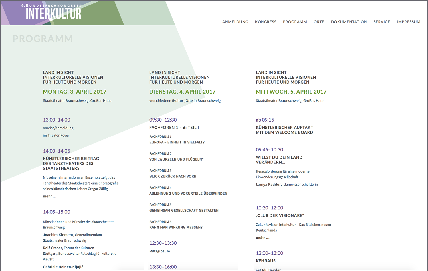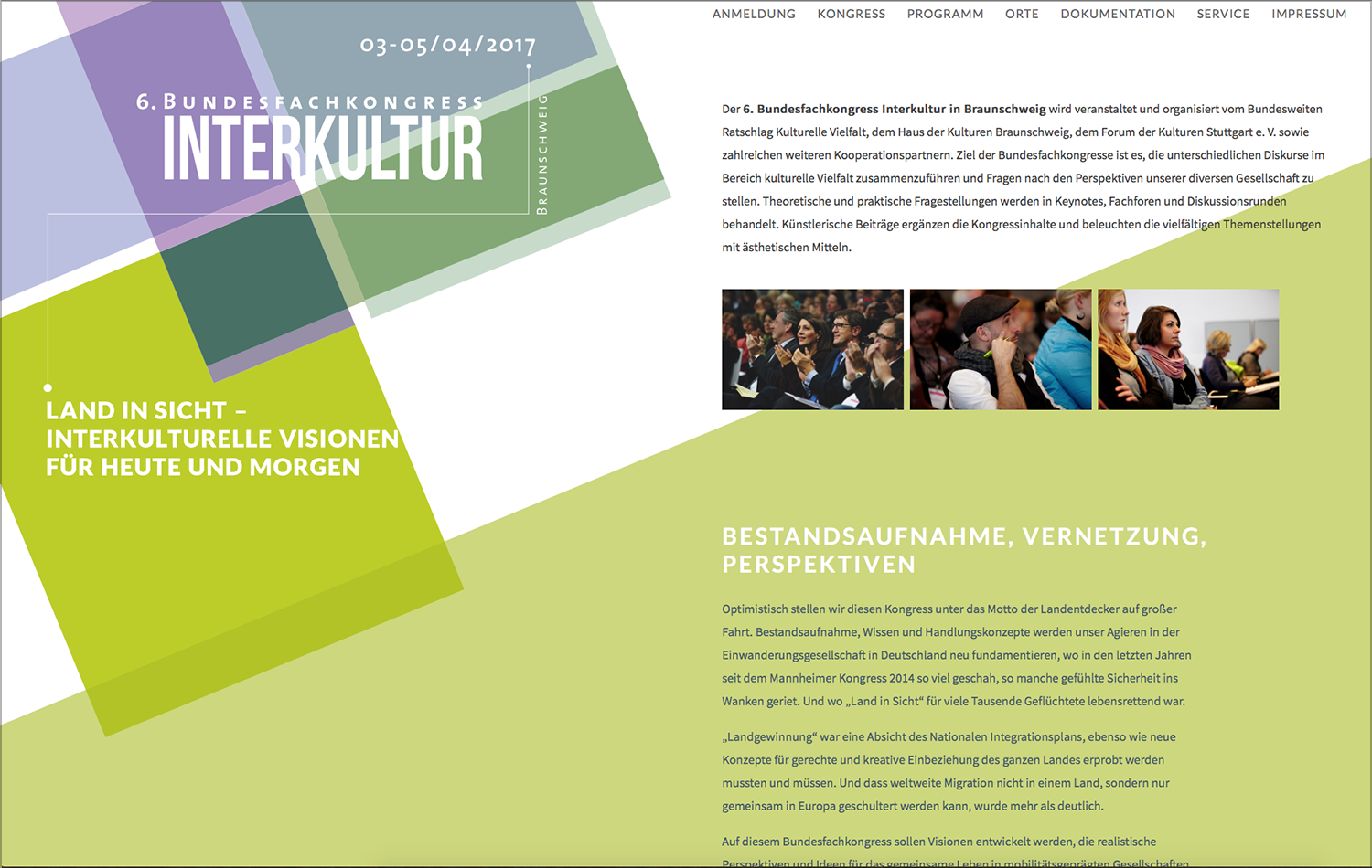 Auftraggeber Haus der Kulturen Braunschweig e.V. | 6. Bundesfachkongress Interkultur | Konzeption Hinz & Kunst | Design Hinz & Kunst | Umsetzung Christof Bobzin